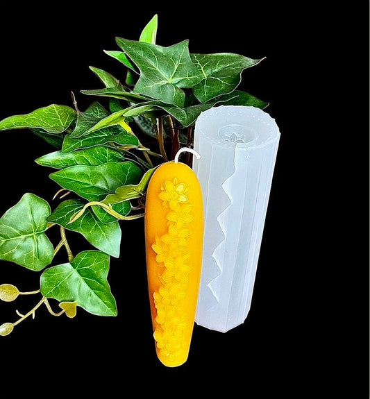 5.5” Silicone chunky taper candle mold with flower pattern - unique design