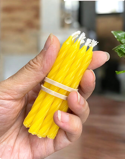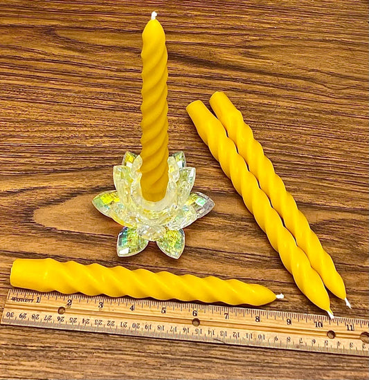 8.5” spiral pure beeswax taper candles - twisted beeswax tapers - dinner tapers - handmade