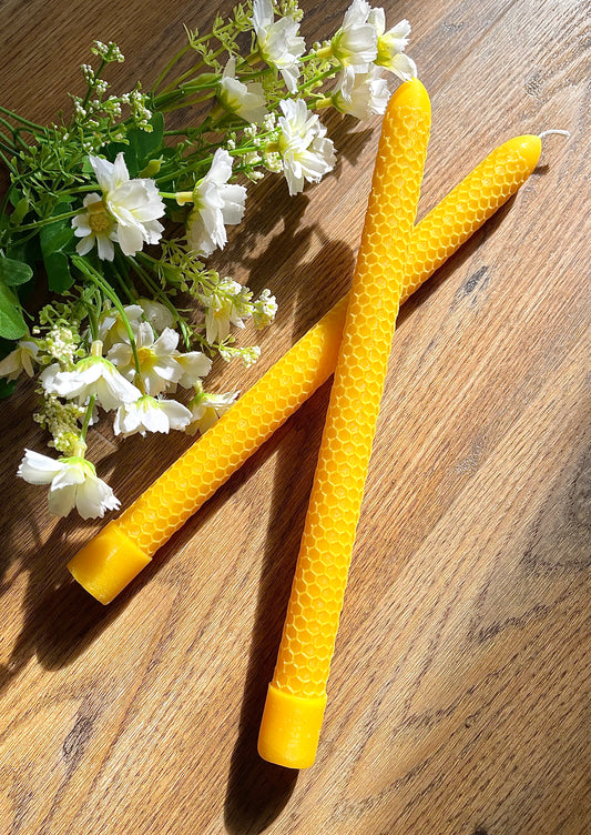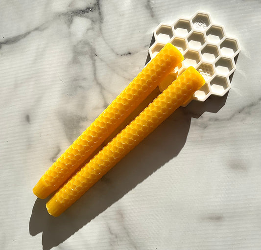 8” solid beeswax honeycomb tapers