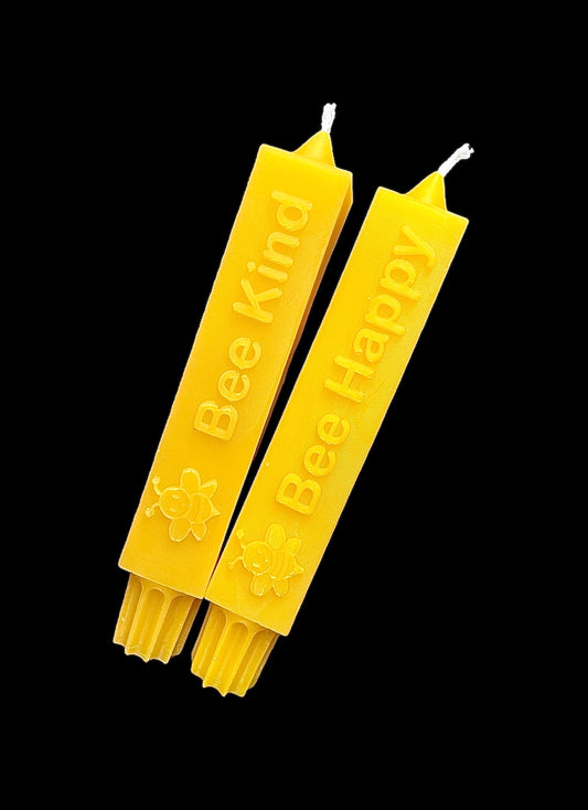 2 Pure beeswax square taper candles Bee happy Bee Kind holiday gift