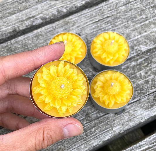 pack of 4 pure beeswax tealight candles - sunflower tea light - handmade candles
