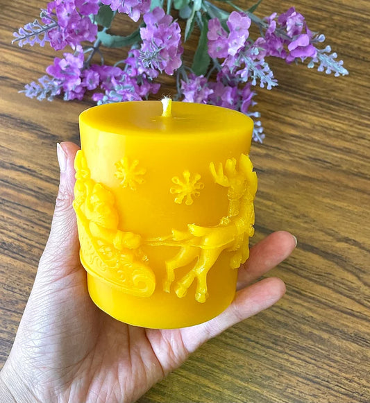 Pure beeswax Christmas pillar candle -reindeer Christmas tree holiday candle gift - Christmas gift