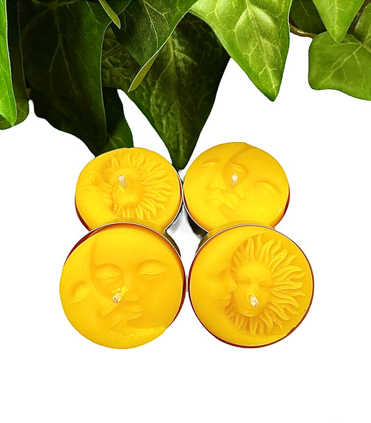 Pure beeswax tealight candles - moon face sun face - altar tealights