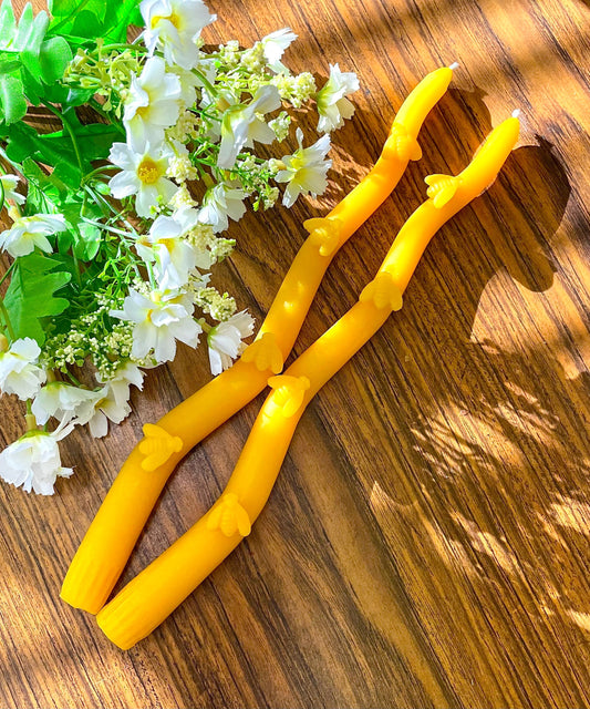 2 Beeswax taper candles - candle pair - Pure beeswax dinner candles - dripless candles - dancing bee taper - decorative candles - 11.5”