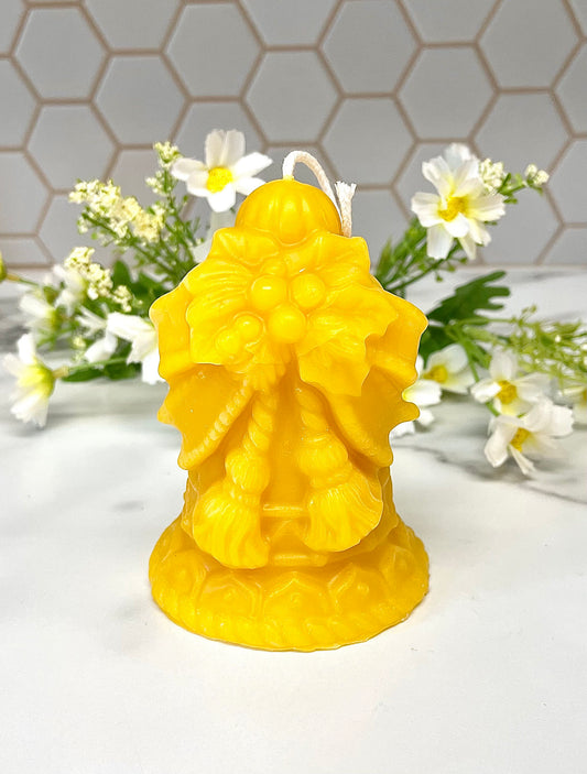 pure beeswax Christmas bell candle - holiday candle gift - artisan candle - candle gift