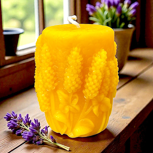 Pure beeswax lavender pillar candle