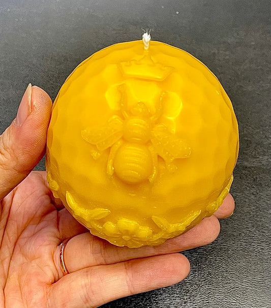 100% pure Beeswax Queen bee sphere candle - holiday gift - Christmas gift - beeswax ball candle - 3”