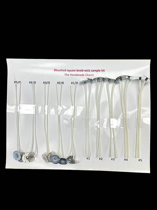 Bleached square braid wick sample kit with wick suggestion & rate chart - 10 wick sizes