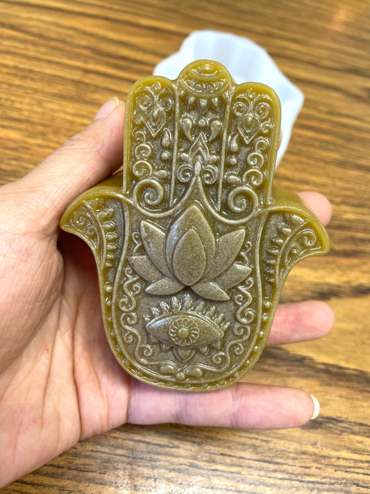 Style 1 Silicone Hamsa hand mold 3.5” - soap resin wax mold - ornament lotion bar mold - food grade