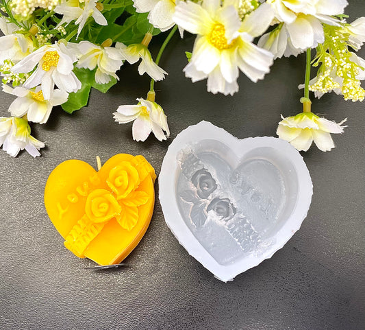 silicone heart mold - candle resin soap mold - Valentine candle mold - Guest soap - rose heart - 2”