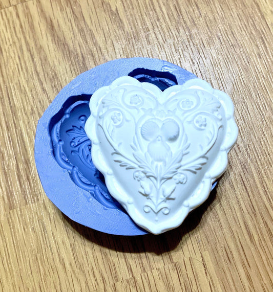 silicone heart ornament mold - resin soap mold - Guest soap - floral heart - paper weight