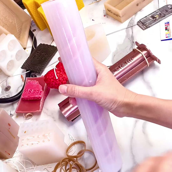 Similar hand rolled double spiral tapers on market are selling for over $35 per pair, this mold makes a solid piece with the same elegance but burns much longer.