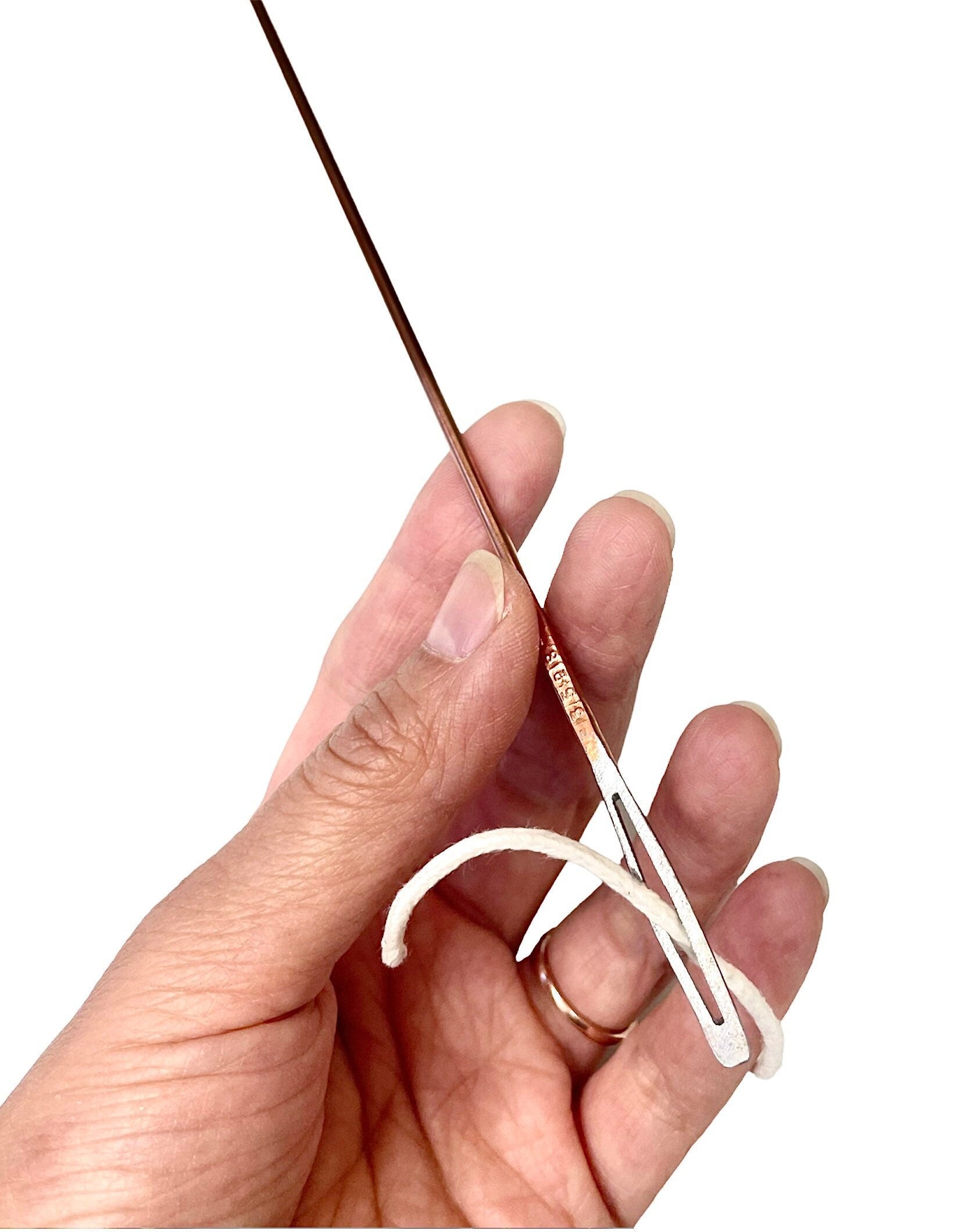 You can use this copper coated 15” long wicking needle to help thread the wick through taper molds or any silicone / rubber molds with no wick holes. Be careful! The end is sharp!