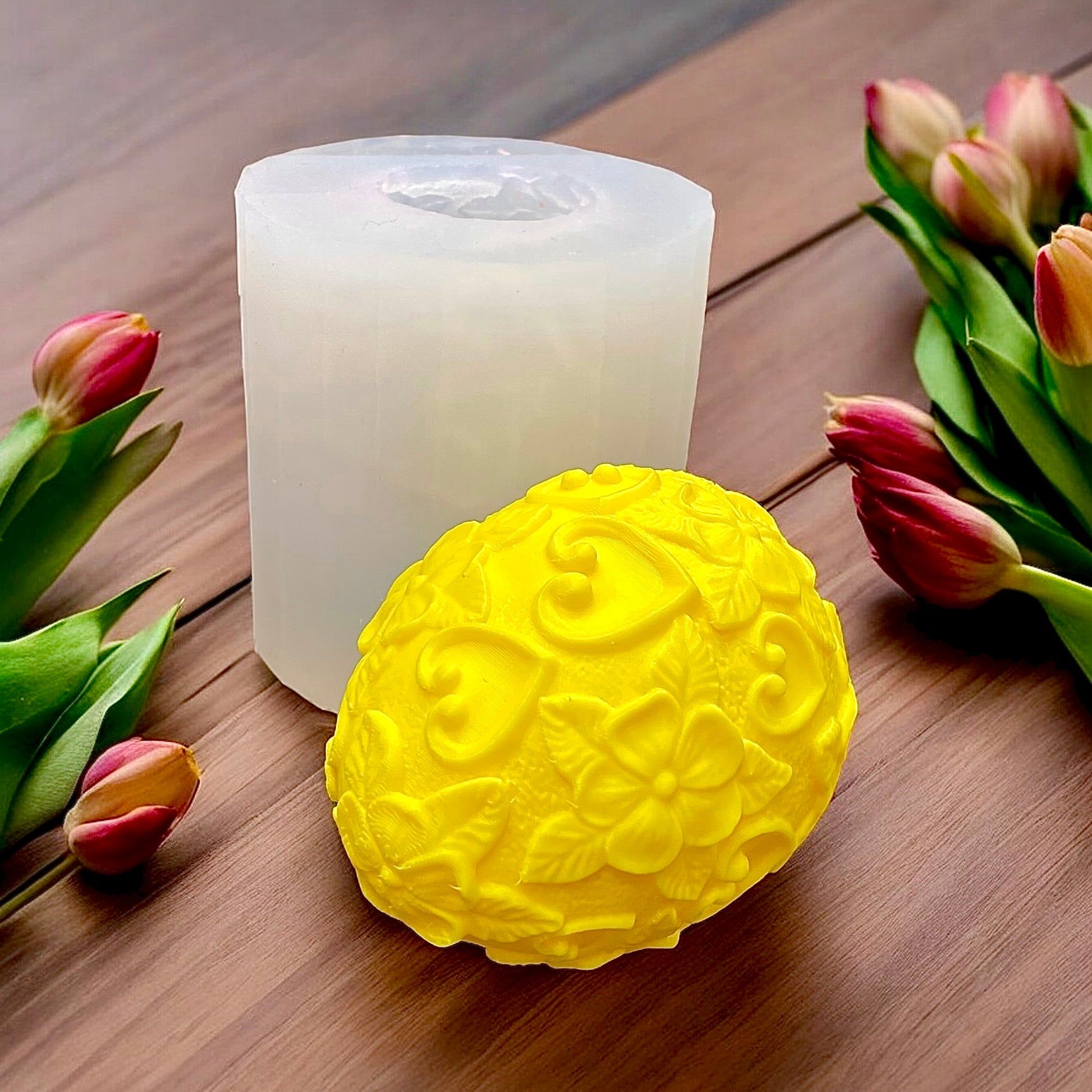 3D Silicone decorated egg Mold - Easter egg mold - flower egg - candle soap resin mold