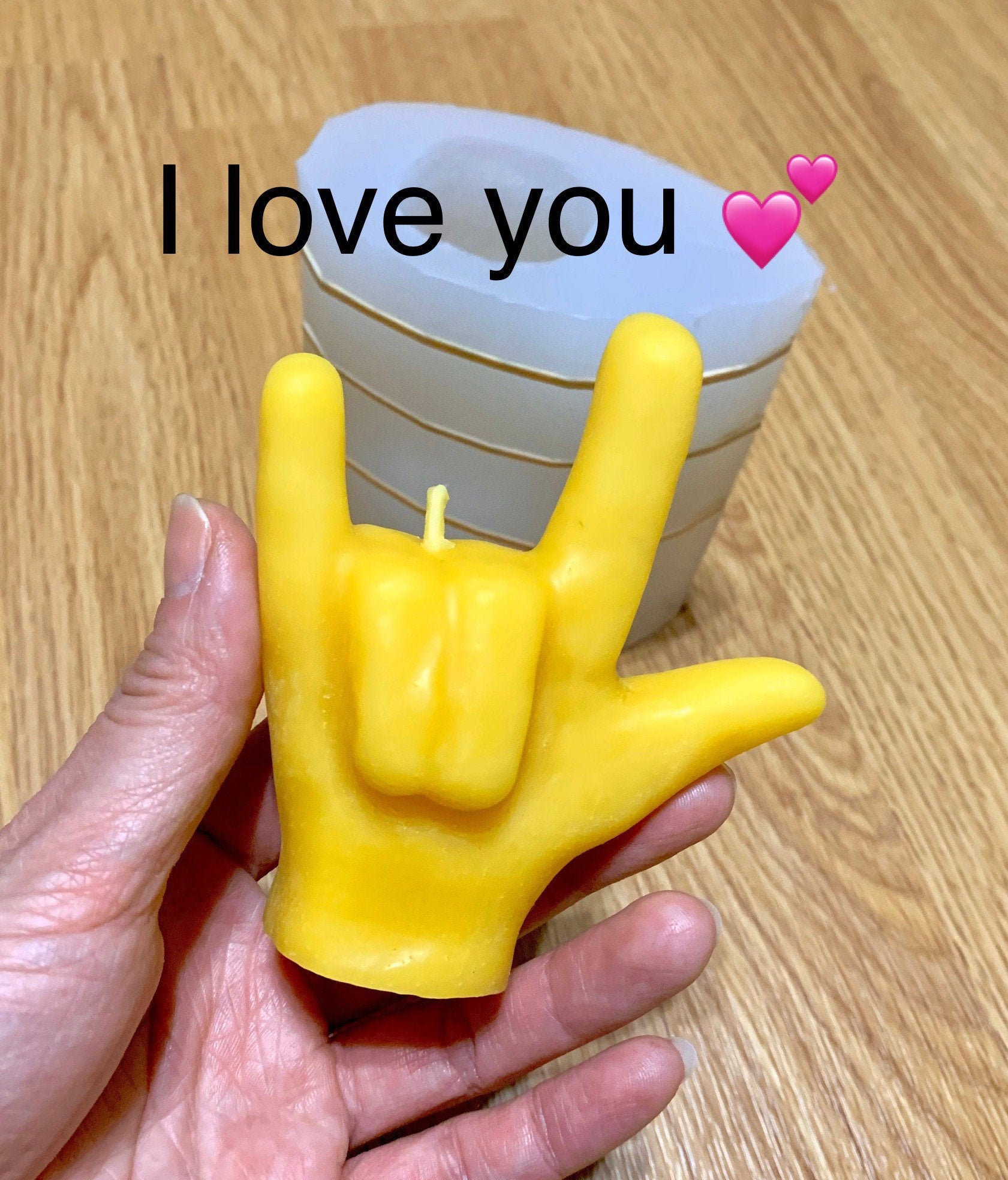 For sale is one 3D silicone hand mold with sign language I love you. great for candle & soap, or resin project.