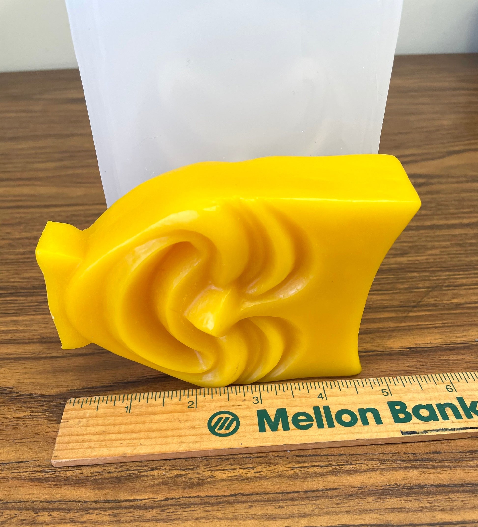 Finished candle size: about 3 1/4” wide, 4.5” tall, 1 1/4” thick.