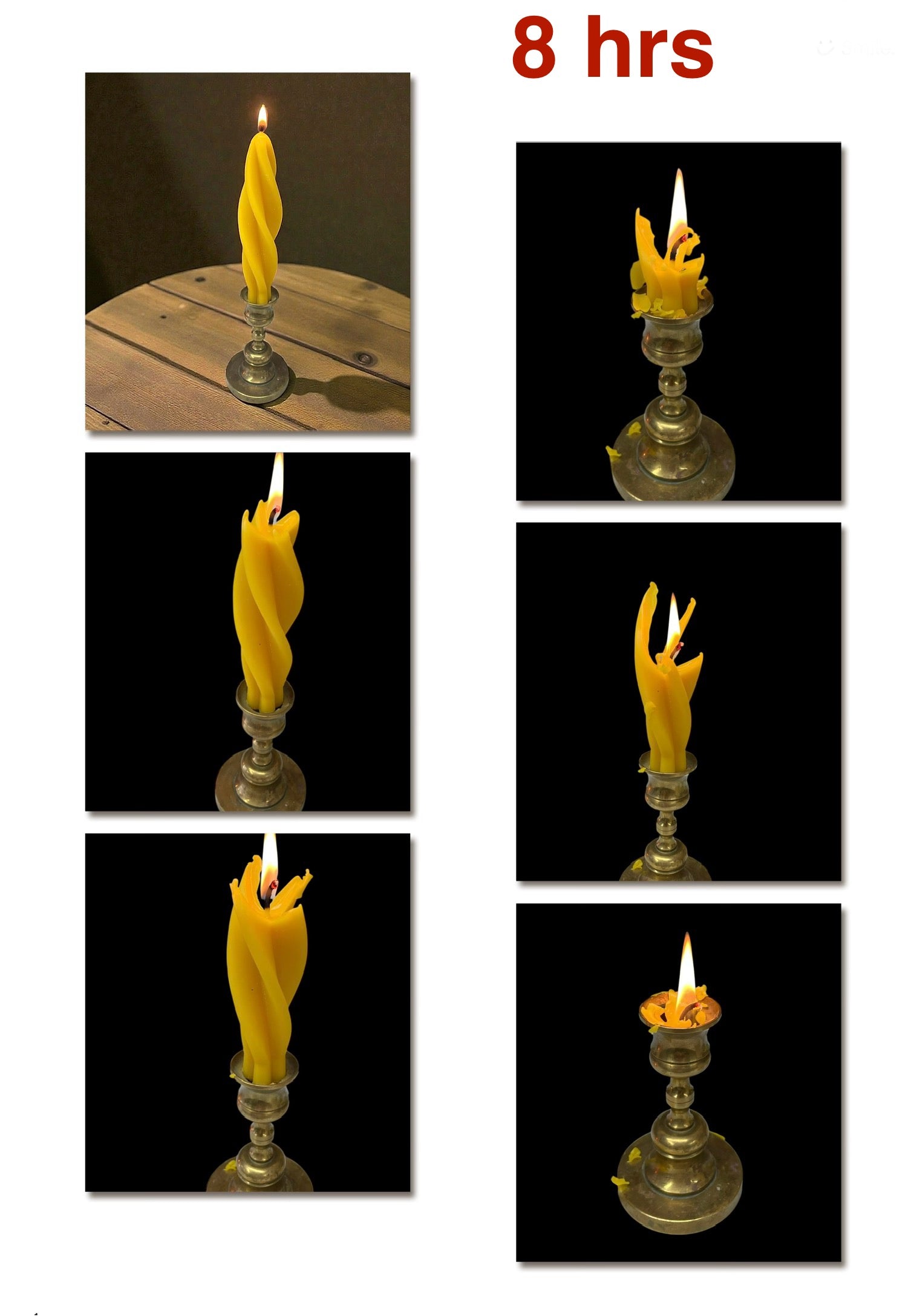 *** A finished candle is 6” tall, the base is 7/8” wide which fits in standard sized taper holder. Each candle weighs about 1.7 ozs.