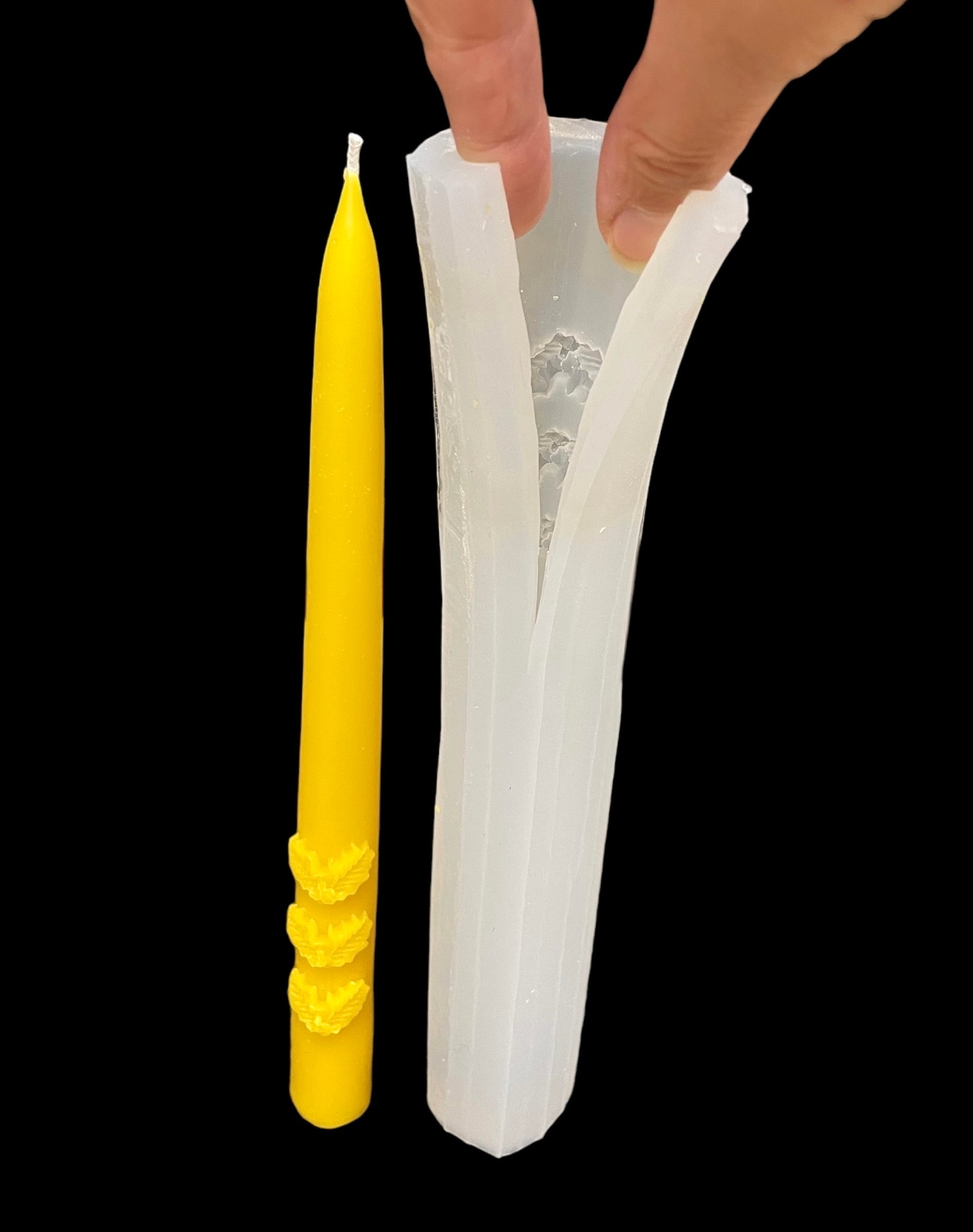 This listing is for one handmade silicone taper candle mold designed with holly berry and leaves.