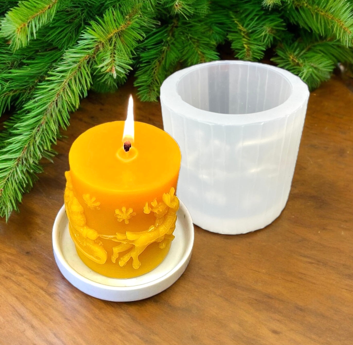 For sale is one handmade silicone candle mold designed with Santa on sleigh with reindeers. Great for making Christmas candles.