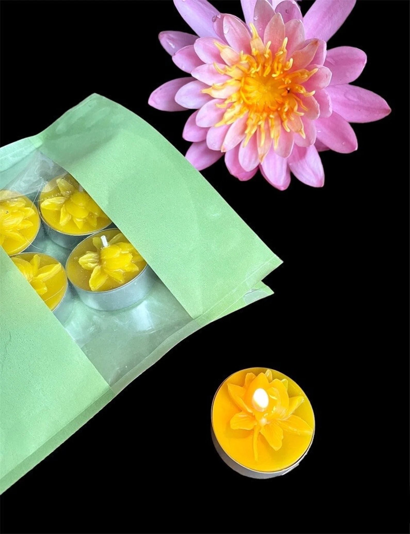 pack of 4 pure beeswax tea light candles - lotus flower tealights - water lily candle - handmade tealight