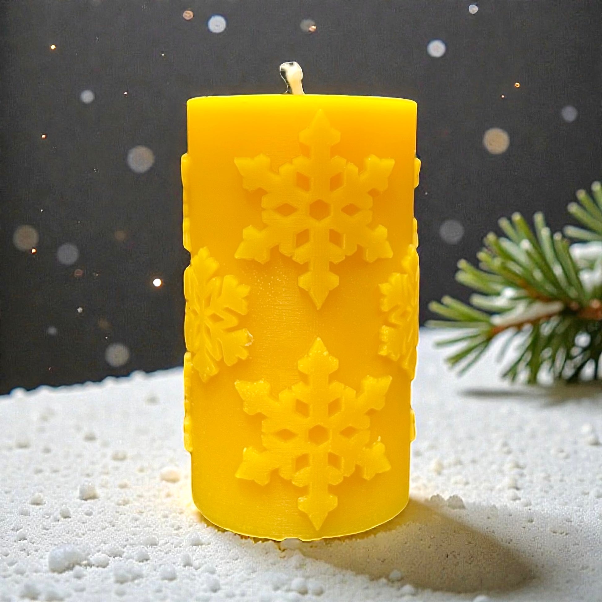 For sale is 1 snowflake candle made with pure capping beeswax.