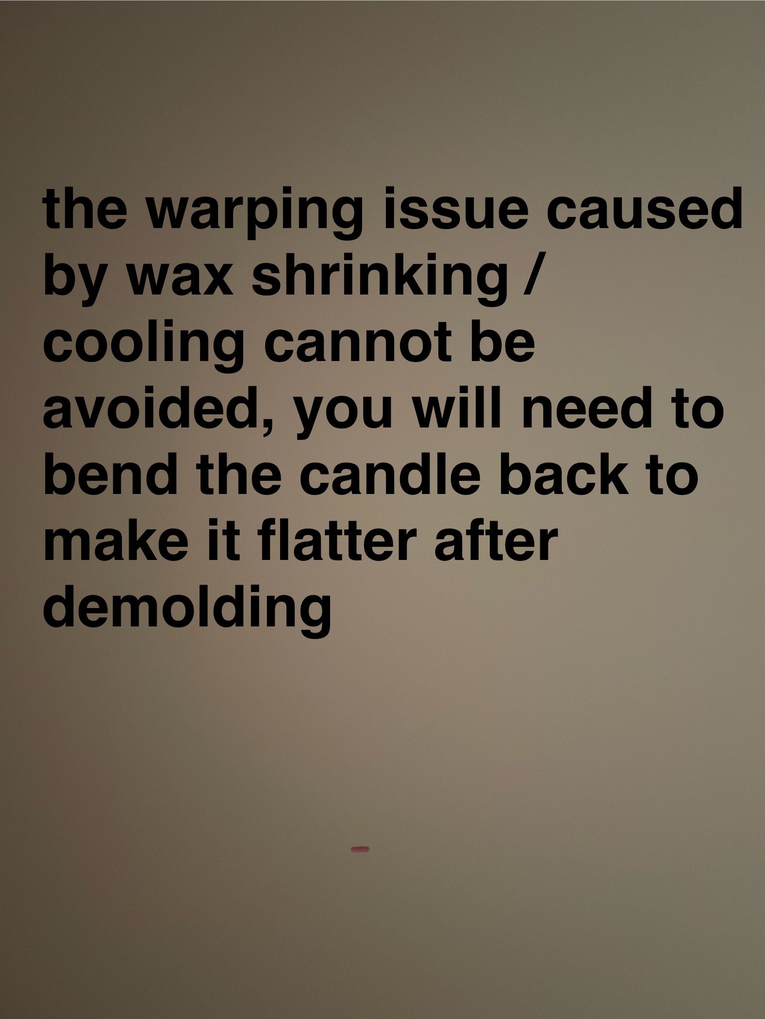 *** note from the seller: the warping issue caused by wax shrinking / cooling cannot be completely avoided, but if you follow the instructions, you can make better candles which would burn well.