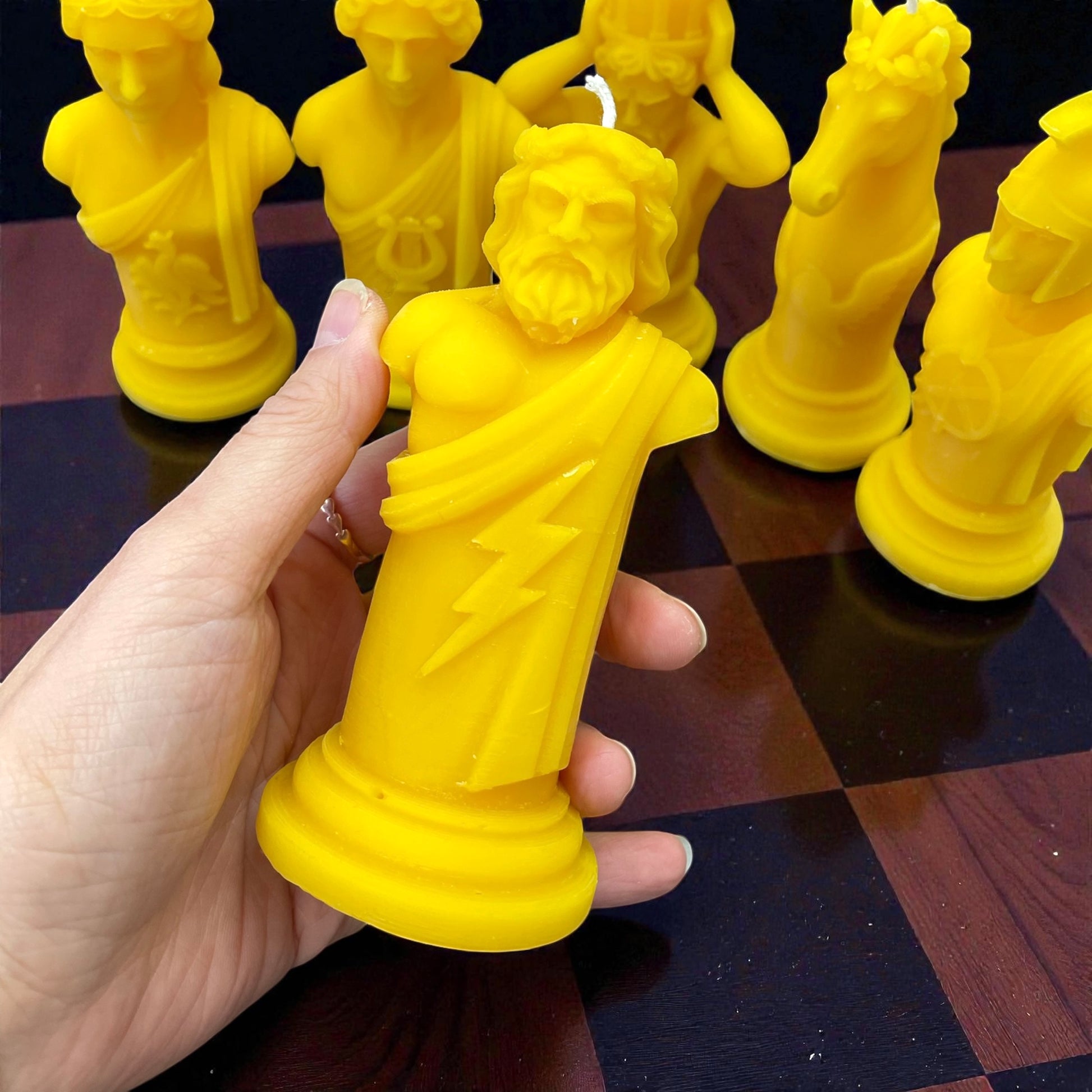 This listing is for a set of handmade pure beeswax chess candles, pick the style you want: